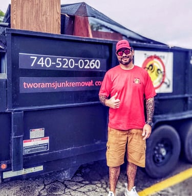 TWO RAMS JUNK REMOVAL EFFICIENTLY AND SAFELY LOADS CONSTRUCTION DEBRIS IN OUR DUMP TRAILER WITH A METHOD TO OUR MADNESS.